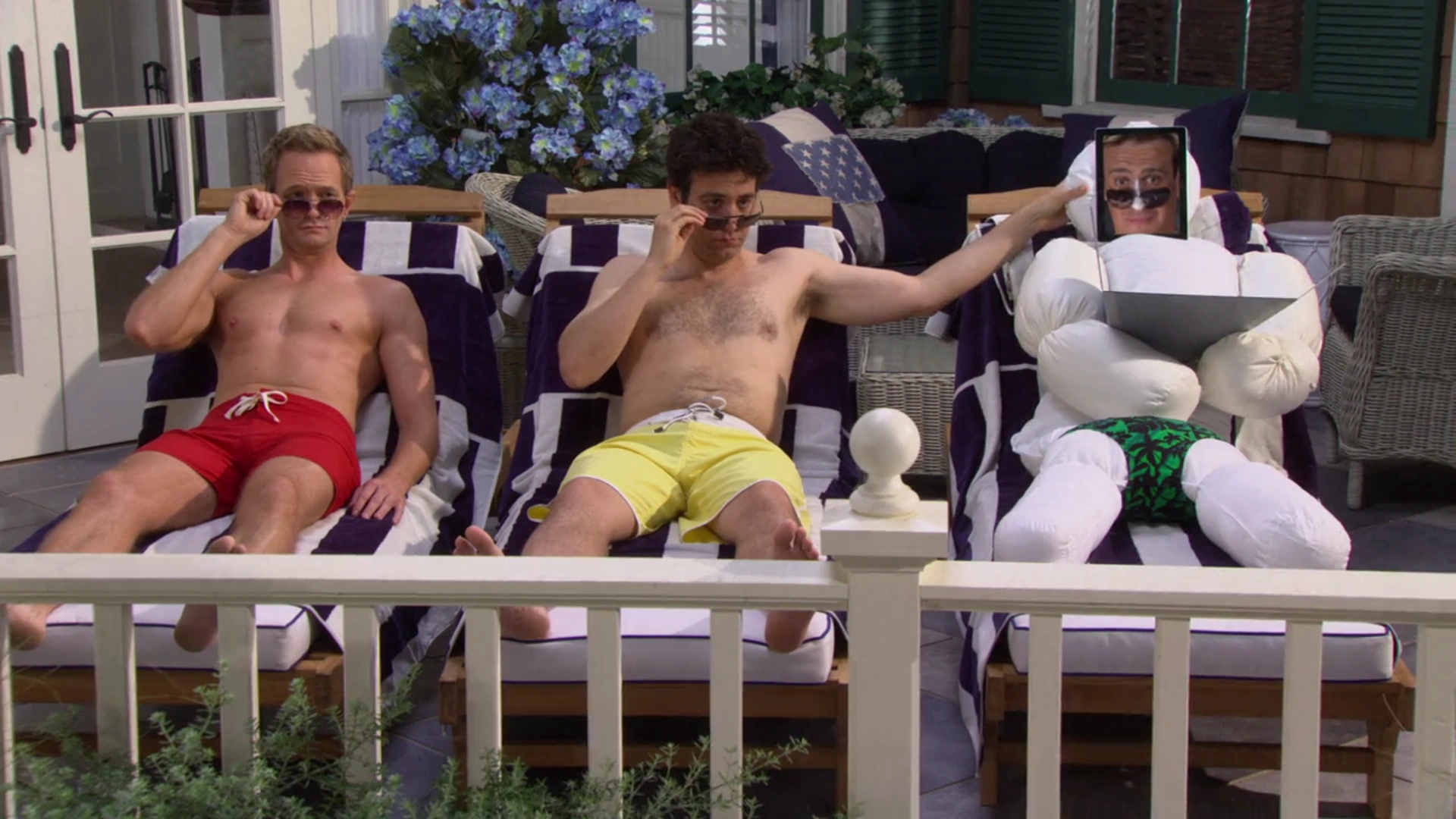 Freitag, 15 Uhr (51 Stunden bis zur Hochzeit). Barney berichtet Ted, dass er ihn und Robin zusammen im Central Park gesehen habe und möchte wissen, was los ist. Ted erklärt, dass er sie nur aufgemuntert habe und Barney tut so, als wäre er mit dieser Erklärung zufrieden,weil er seinem besten Freund vertraut. Als sie später mit Robin und Lily zusammensitzen, bereitet Lily ein Marshallkissen vor, das ein Tablet als Kopf hat, sodass Marshall sich über das Internet mit ihnen verbinden kann.