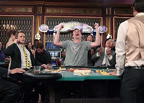 Ted macht sich auf den Weg ins MacLaren's und als Barkeeper Lou sich nach seinem Wohlbefinden erkundigt, sieht Ted wieder Robin vor sich. Währenddessen sind Barney und Marshall im Casino und er weiß, dass er sich verrückt verhalten hat. Barney beruhigt ihn, weil er weiß, dass Marshall, genauso wie er, aus Liebe gehandelt hat. Als Marshall sich Sorgen um Lily macht, will Barney, dass er für eine Stunde sein Handy ausmacht. Marshall möchte das nicht, doch Barney schlägt ihm einen Deal vor. Wenn Marshall ihm eine Stunde gibt, in der er das Telefon ausmacht und sich gnadenlos betrinkt, würde er wieder die Entchenkrawatte anziehen. Marshall lässt sich darauf ein und bestellt sofort 100 Tequilas worauf Barney sagt "Ich bestelle das selbe".