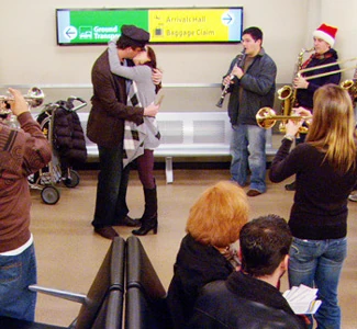 Inzwischen, nachdem Lily realisiert, dass sie die Tradition fortführen will, gerät sie in Panik und versucht, Bier für Marshall aufzutreiben. Sie kommt eine Stunde zu früh am Flughafen an, wo sie auf Ranjit trifft, der mit ihr einen Schnapsladen auftreibt. Der Schnapsladen führt Bier jedoch nur in Fässern und nicht in Dosen und so kauft Lily ein Fass, dass sie im Flughafen auf einen Gepäckwagen schnallt, um damit Marshall zu suchen. Sie kann ihn nicht finden, jedoch tauchen plötzlich Flughafenangestellte auf, die mit ihren Musikinstrumenten das Lied "Auld Lang Syne" spielen. Inmitten der Musikanten taucht Marshall auf, der Lily begrüßt. Es stellt sich heraus, dass es sich bei den Musikanten um die Marschkapelle aus Arizona handelt. Lily und Marshall beschließen, dass dies ihre neue Tradition wird.