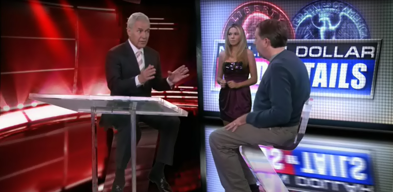 Million Dollar Heads or Tails is a fictional game show where the contestant must guess heads or tails on a large coin. It was originally hosted by Regis Philbin and then later by Alex Trebek.